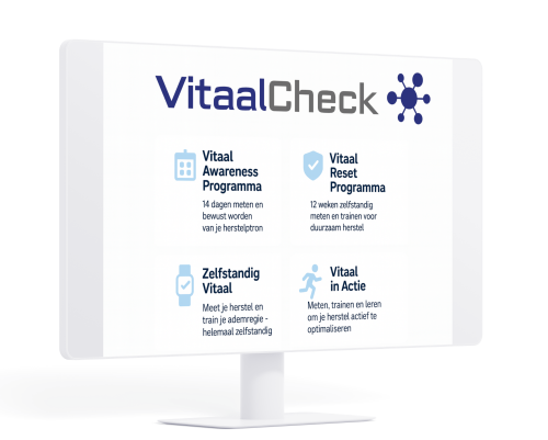 👉 Ons advies: start met een begeleid programma via de Vitaal Check app. Je krijgt daarin niet alleen metingen en inzichten, maar ook professionele ondersteuning, stap-voor-stap begeleiding en training die past bij jouw belastbaarheid van dit moment.